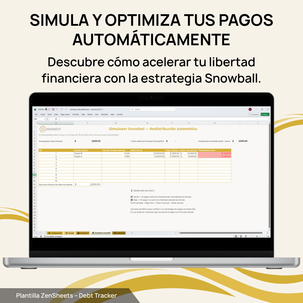 La versión premium del presupuesto ZenSheets combina elegancia y funcionalidad. Administra tus ingresos, gastos y ahorros con un diseño dorado, moderno y minimalista.