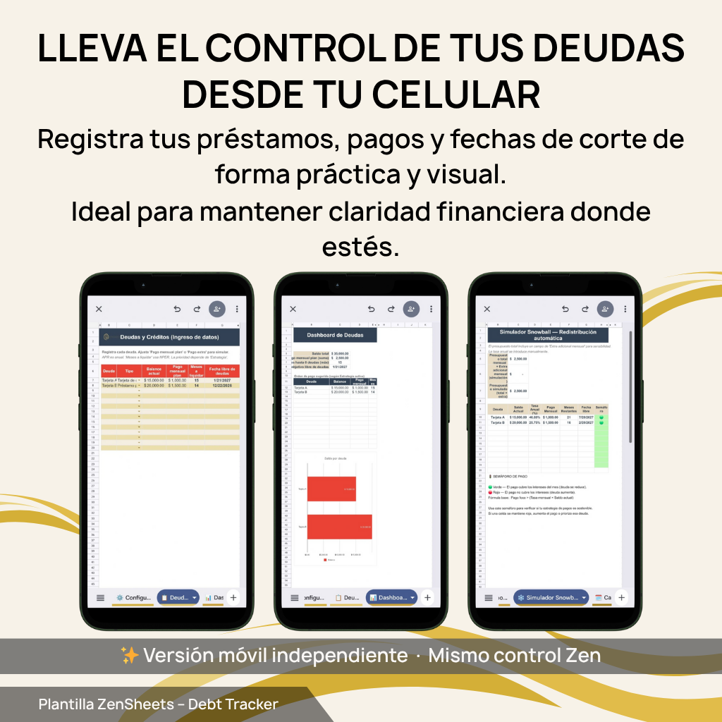Diseño premium con colores crema y dorado ZenSheets.